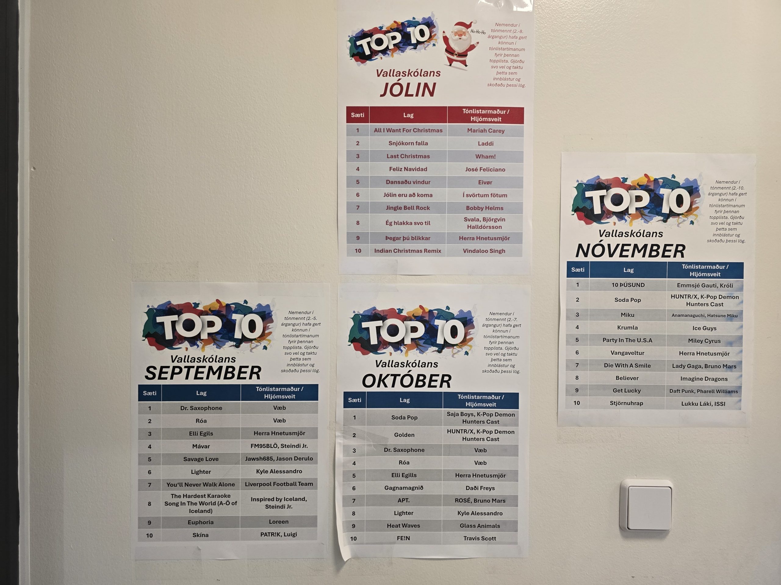 Lesa Meira >>Í hverjum mánuði er kosið um hver 10 vinsælustu lög þess mánaðar eru. Kosningin fer fram í tónmenntartímum og allir nemendur taka þátt í kosningunni. Á myndinni gefur að líta […]